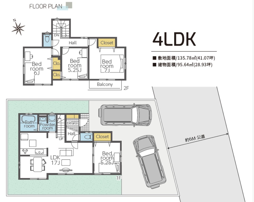 | 土地面積 | 135.78㎡ (公簿) | 建物面積 | 95.64㎡ |